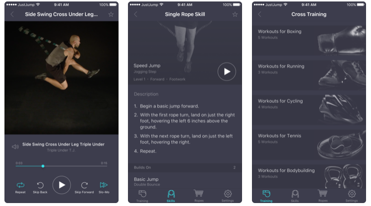 Quick summary: Offers workouts that target sport and training goals for athletes or fitness fanatics. For those looking to learn jump rope tricks it provides over 200 skills and combinations in 4 different skill levels.