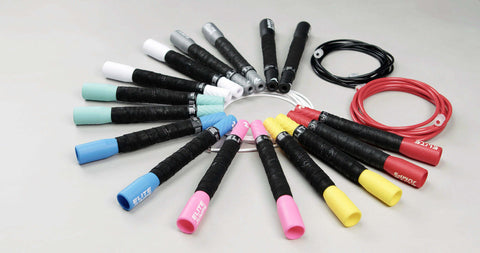 Long 8" handles, non-slip grips, and a three different specialty PVC cords for developing your jump rope skill and progressing to harder workouts and tricks.