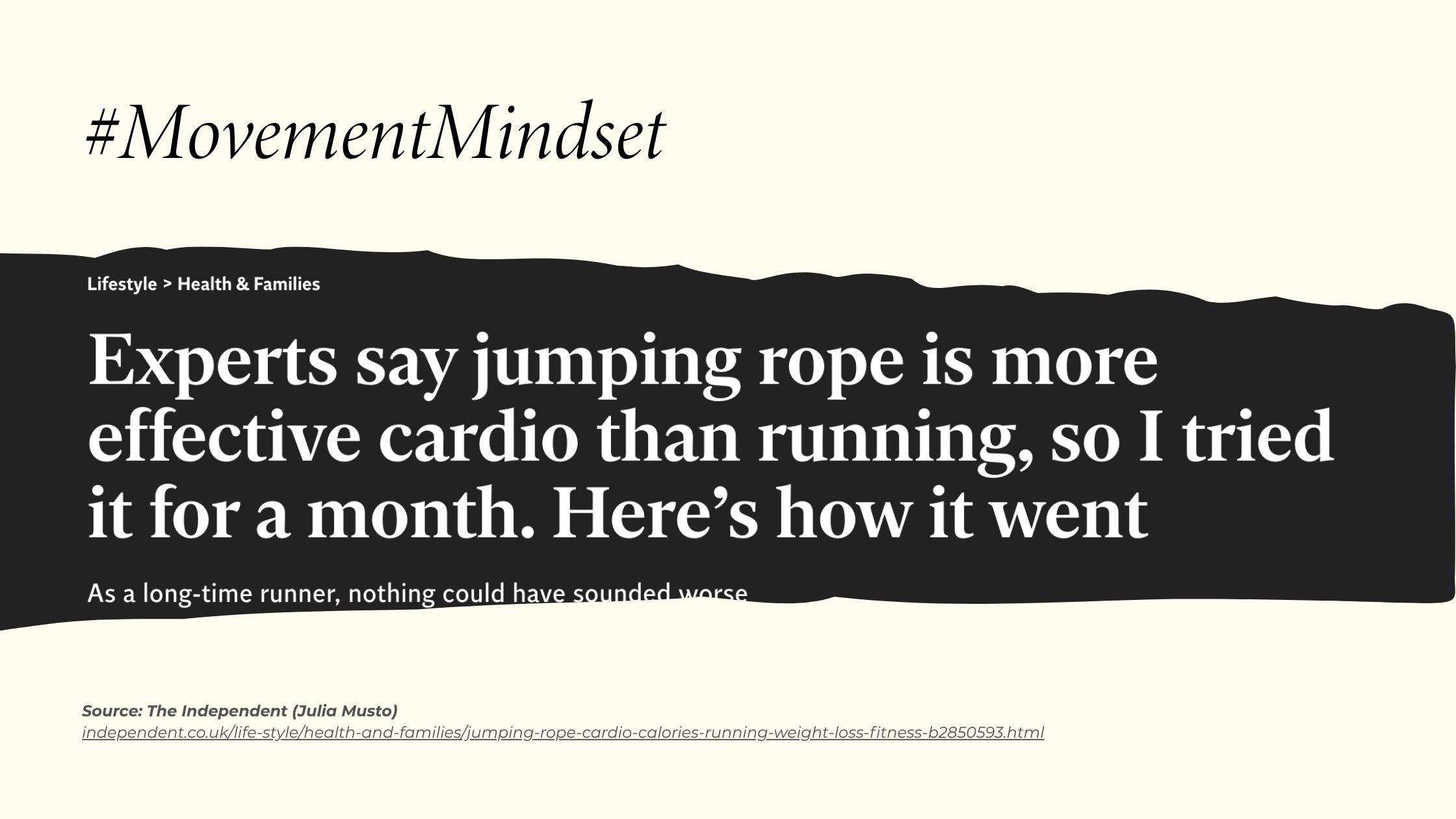 We loved reading The Independent’s recent feature, where journalist Julia Musto decided to swap her daily runs for jump rope workouts to see how it would impact her health.