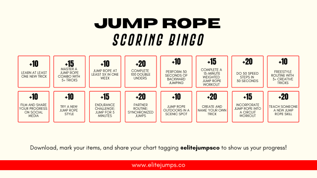 Once you’ve checked your boxes, share your score on social media and tag @EliteJumpsCo. Share it with friends, pick a small prize, and see who “wins.”